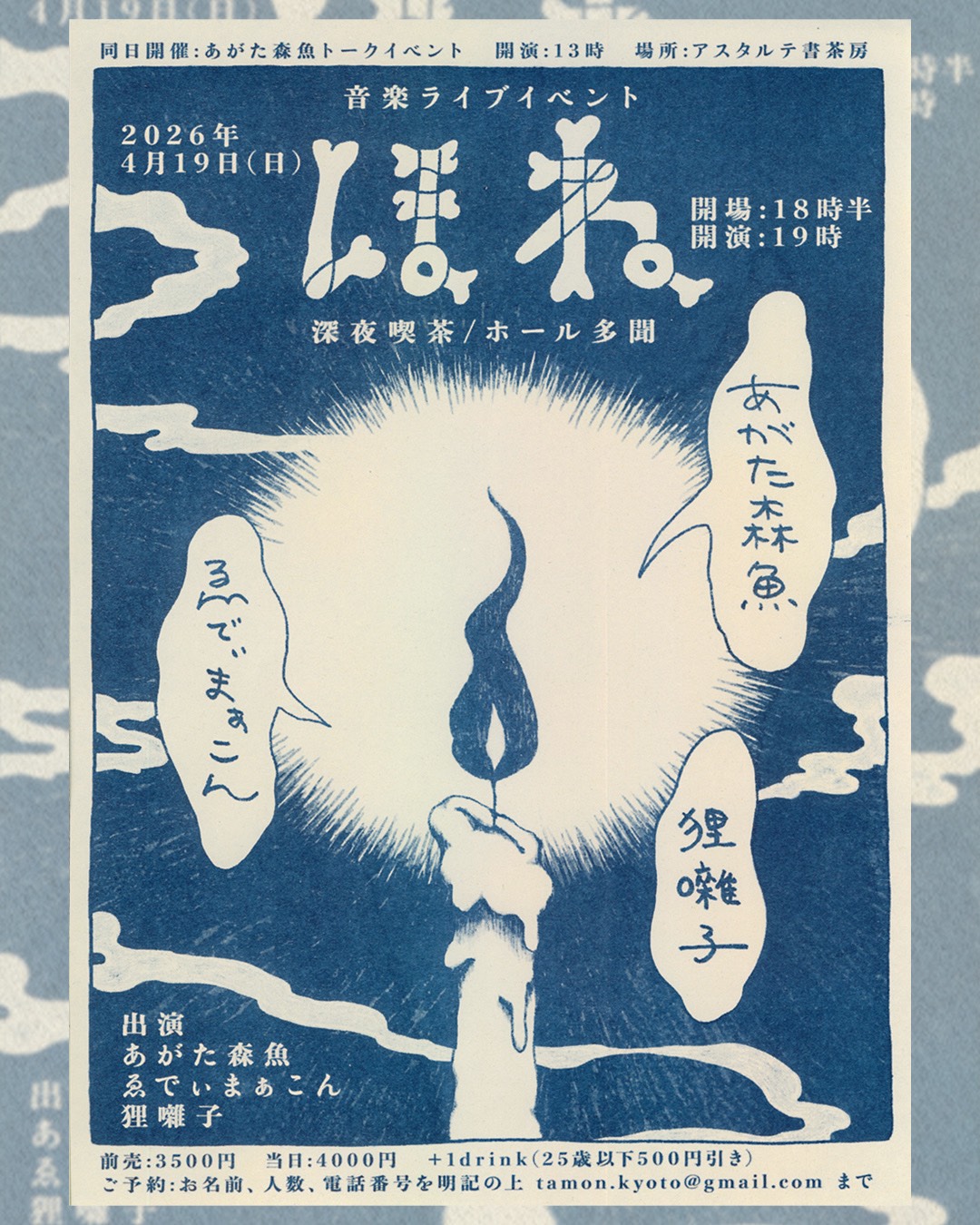 なお同日19時より、「深夜喫茶/ホール 多聞」にてライブ(w ゑでぃ・まあこん/狸囃子)も開催。共通チケットも予約受付中。